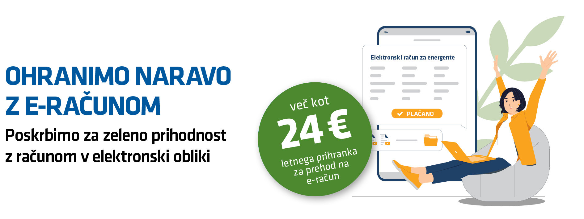 E-račun je preprost, priročen in omogoča prihranke tako na vašem računu kot v okolju. Uredite si e-račun, prihranite skoraj 20 evrov in sodelujte v nagradni igri “Z e-računom do električnega kolesa”.